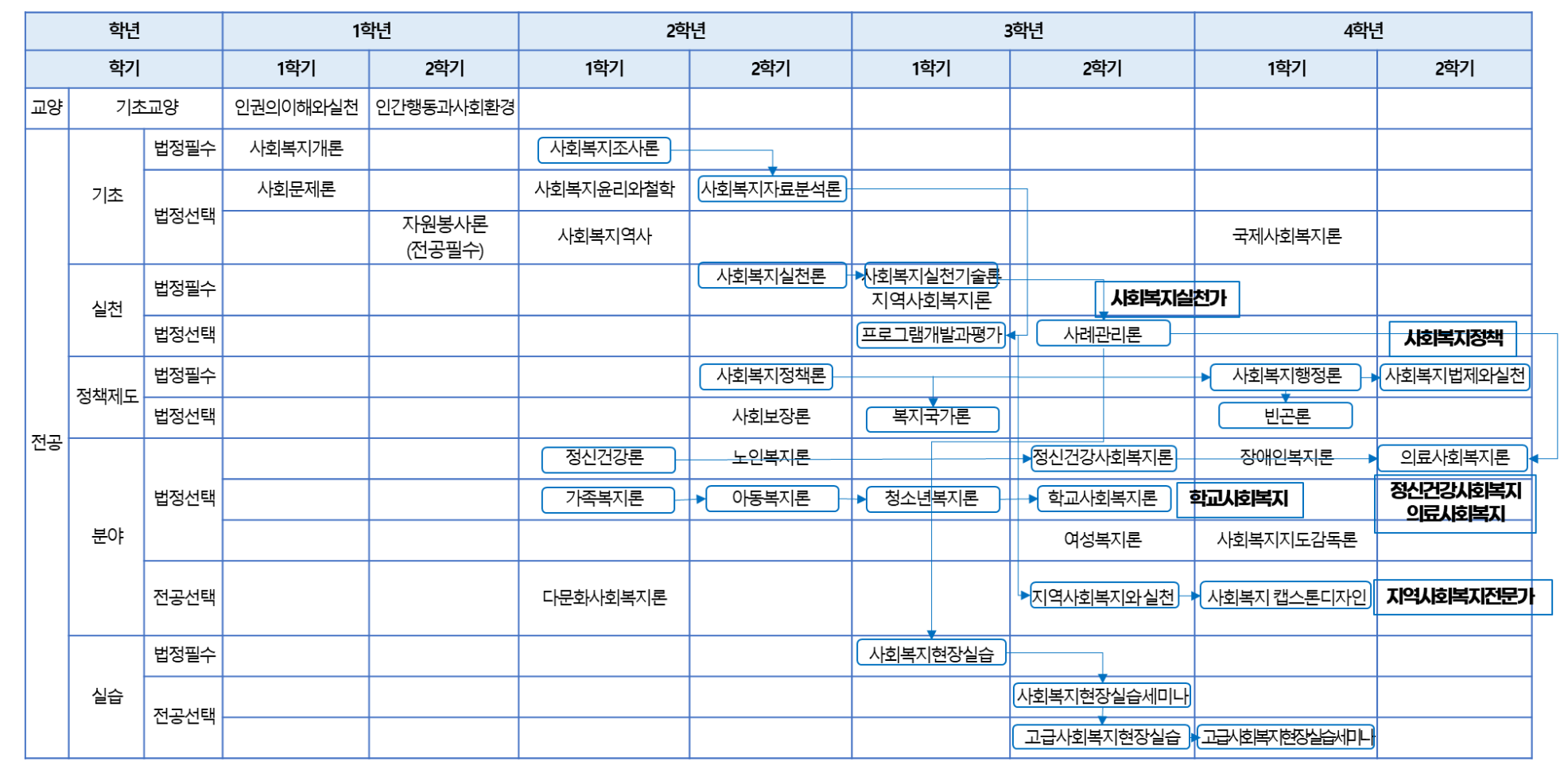사회복지학전공 소개 > 교과과정